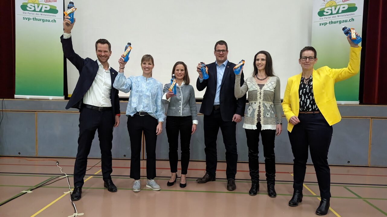 An ihrer Delegiertenversammlung hat die SVP Thurgau die sechs Kandidierenden für die Nationalratswahlen nominiert. Nationalrätin Diana Gutjahr, Nationalrat Manuel Strupler, Kantonsrat Pascal Schmid, Kantonsrätin Eveline Bachmann, Kantonsrätin Denise Neuweiler und Kantonsrätin Judith Ricklin wollen die drei SVP-Sitze im Nationalrat verteidigen. Für den Ständerat wurde Jakob Stark nominiert.