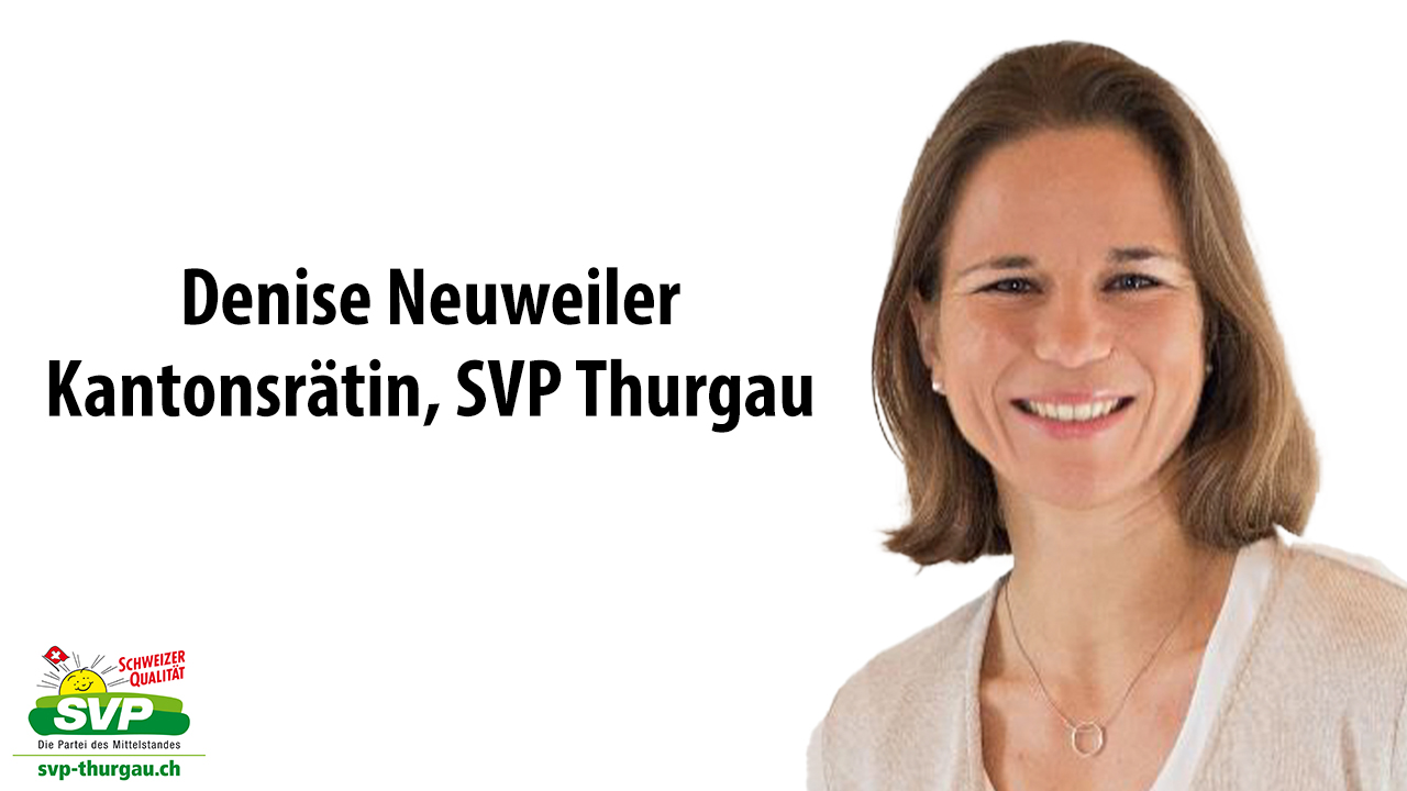 Der Verband Thurgauer Gemeinden (VTG) muss aufgrund eines Rücktritts eine Vakanz im Vorstand besetzen. Die SVP Thurgau ist in der glücklichen Lage, mit Denise Neuweiler, Gemeindepräsidentin von Langrickenbach und Kantonsrätin, eine fähige Person für dieses Amt zur Wahl zu empfehlen.