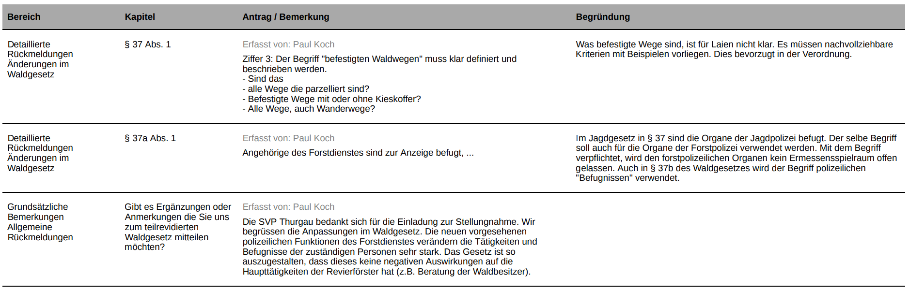Detaillierte Rückmeldungen Änderungen im Waldgesetz